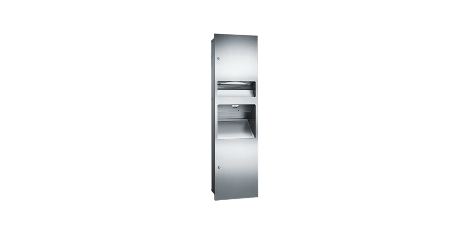 Pratiques et polyvalentes, ces unités regroupent distributeur de papier et poubelle intégrée pour optimiser l’espace et maintenir les sanitaires propres et fonctionnels.