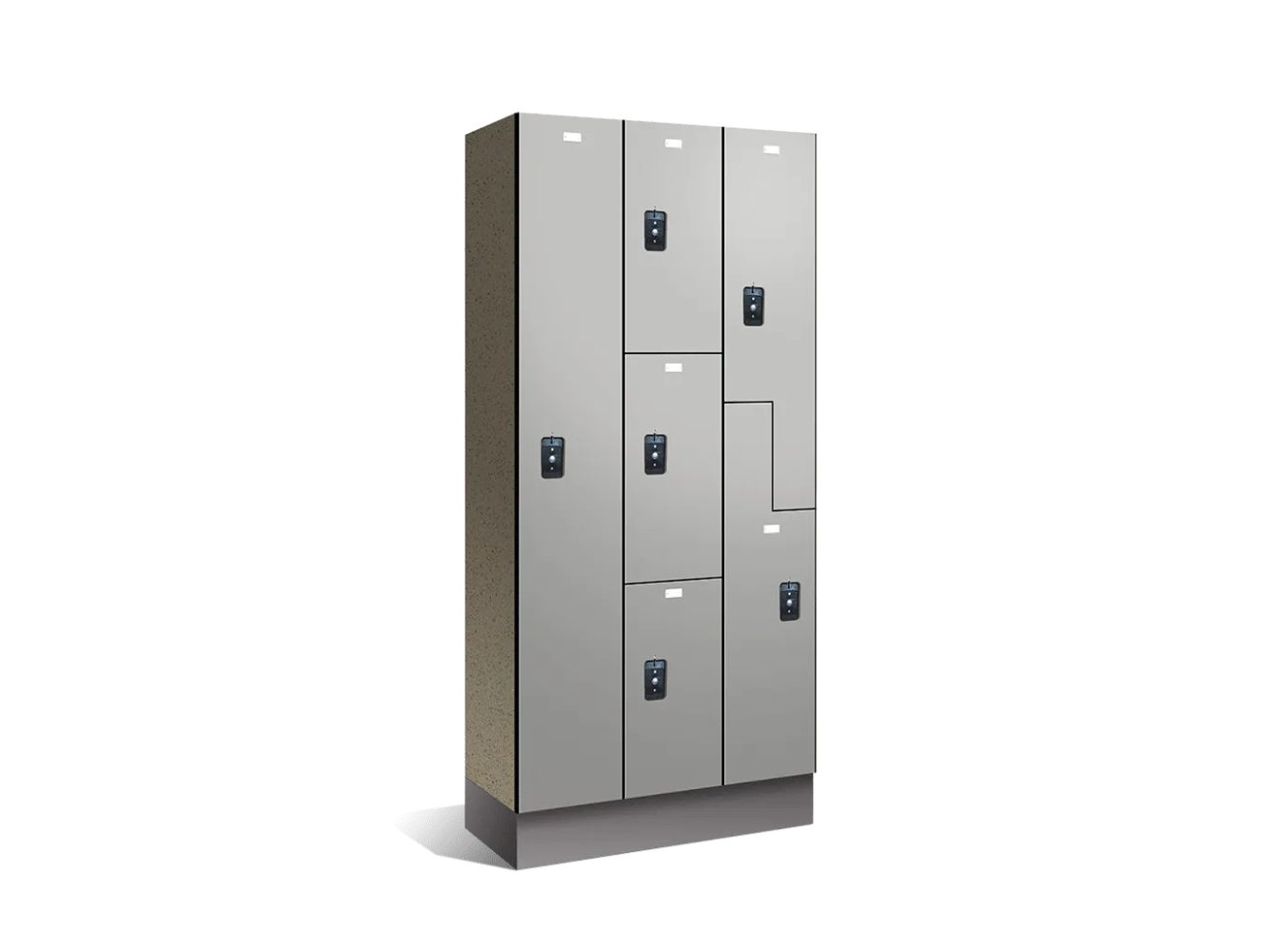 Les casiers phénoliques sont le matériau de choix lorsqu'une grande souplesse de conception est souhaitée ou lorsque la durabilité et la solidité sont requises. Ces casiers sont fabriqués pour résister à l'épreuve du temps. Les composants denses, combinés à des fixations en acier inoxydable, résistent aux conditions d'humidité les plus extrêmes. Le phénolique résiste aux chocs, à l'eau et à la corrosion, et ne favorise pas la prolifération des bactéries. La qualité supérieure de la construction et des matériaux utilisés dans le système de casiers permet de l'adapter à tous les types d'installations, y compris les clubs de santé, les country clubs et les salles de bains des cadres. Les casiers phénoliques peuvent être facilement personnalisés.
