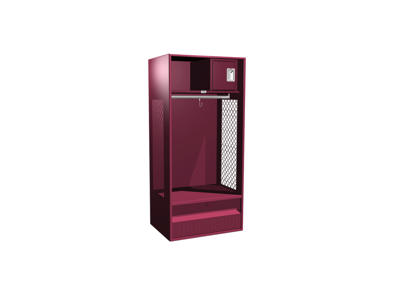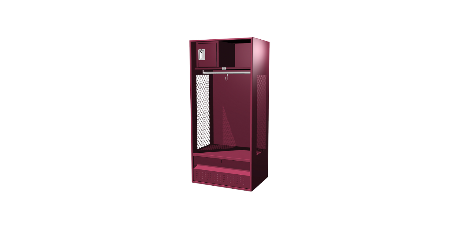 La collection Pro est spécialement conçue pour les applications qui nécessitent un accès facile aux uniformes et à l'équipement. Choisissez la configuration qui répond le mieux à vos besoins en ajoutant une boîte de sécurité verrouillable et/ou un casier à pieds avec un dessus renforcé qui sert également de siège. La façade ouverte et les côtés perforés permettent une ventilation complète, avec un grand espace de rangement dédié. Le choix idéal pour les casiers sportifs.
