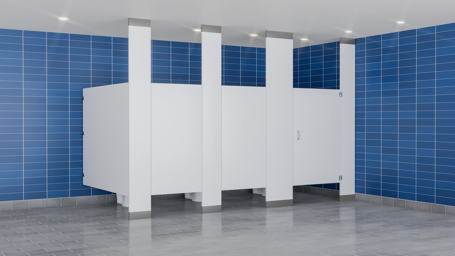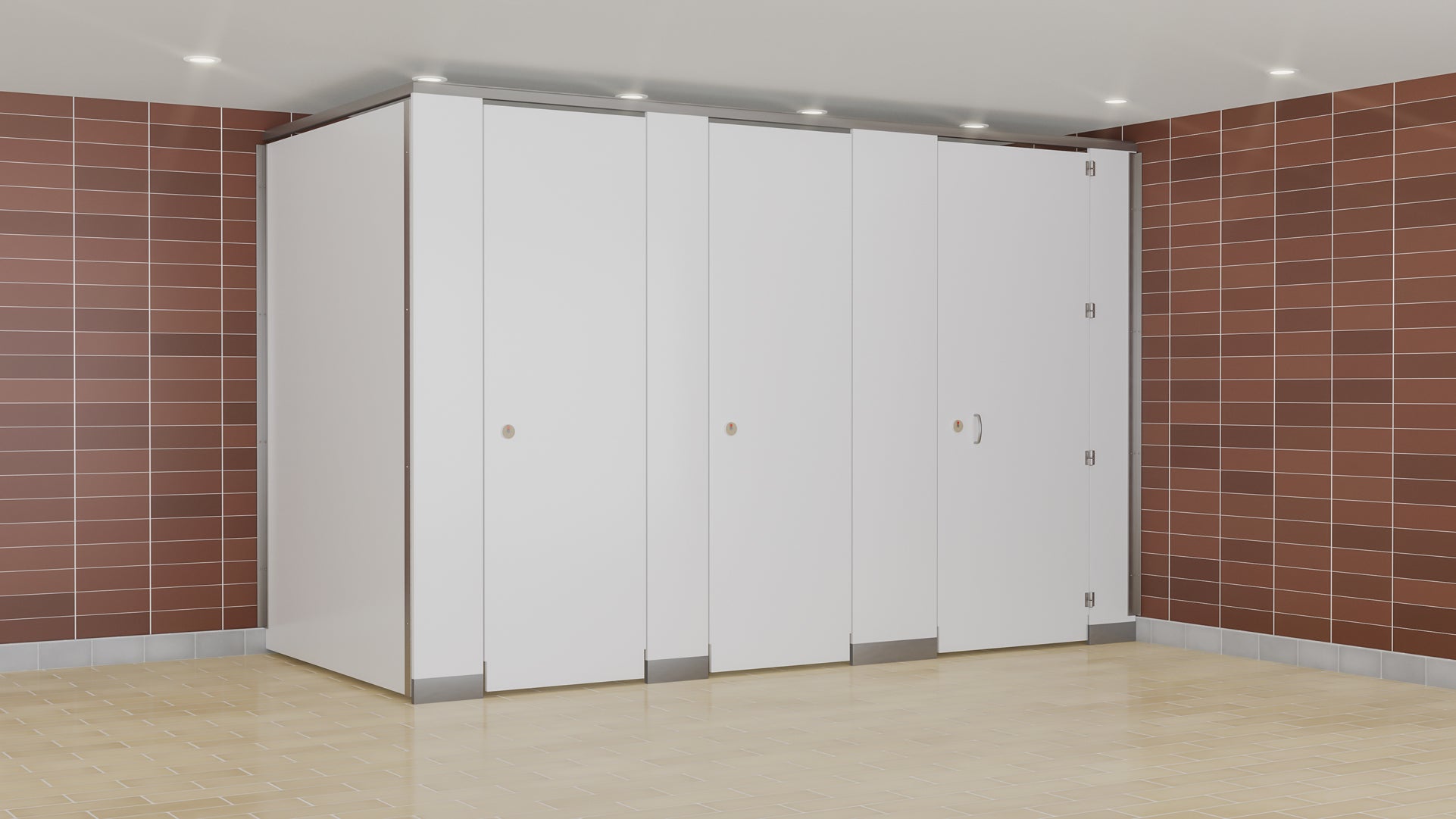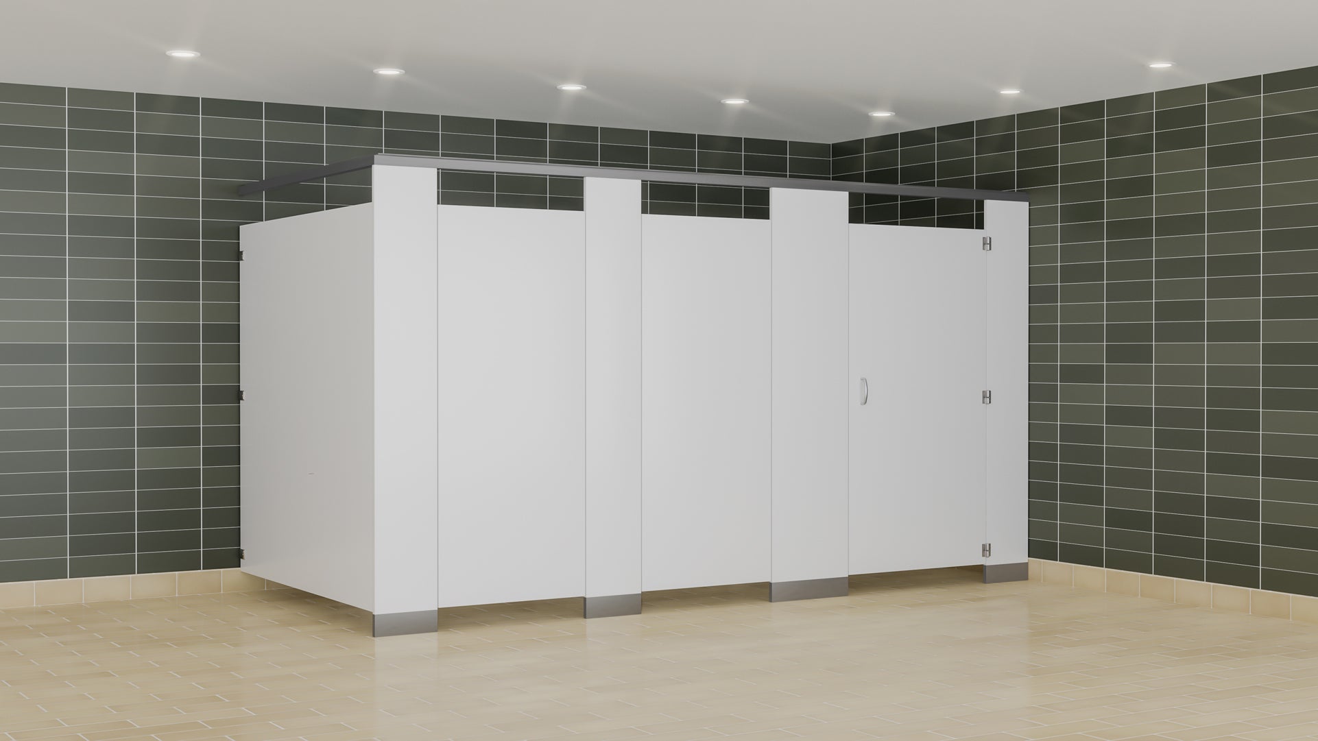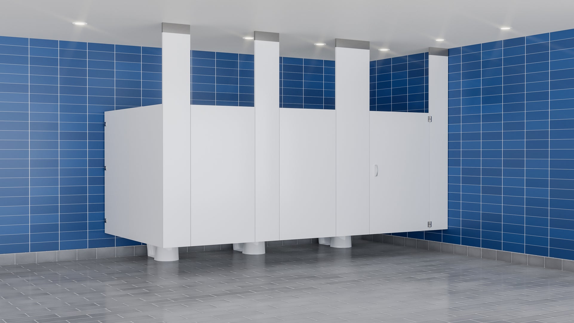Les cloisons phénoliques sont solides et durables et comportent des portes et des panneaux d'une hauteur maximale de 72". Les portes à feuillure à fermeture automatique se chevauchent pour supprimer toute vue sur la cabine et garantir l'intimité.
