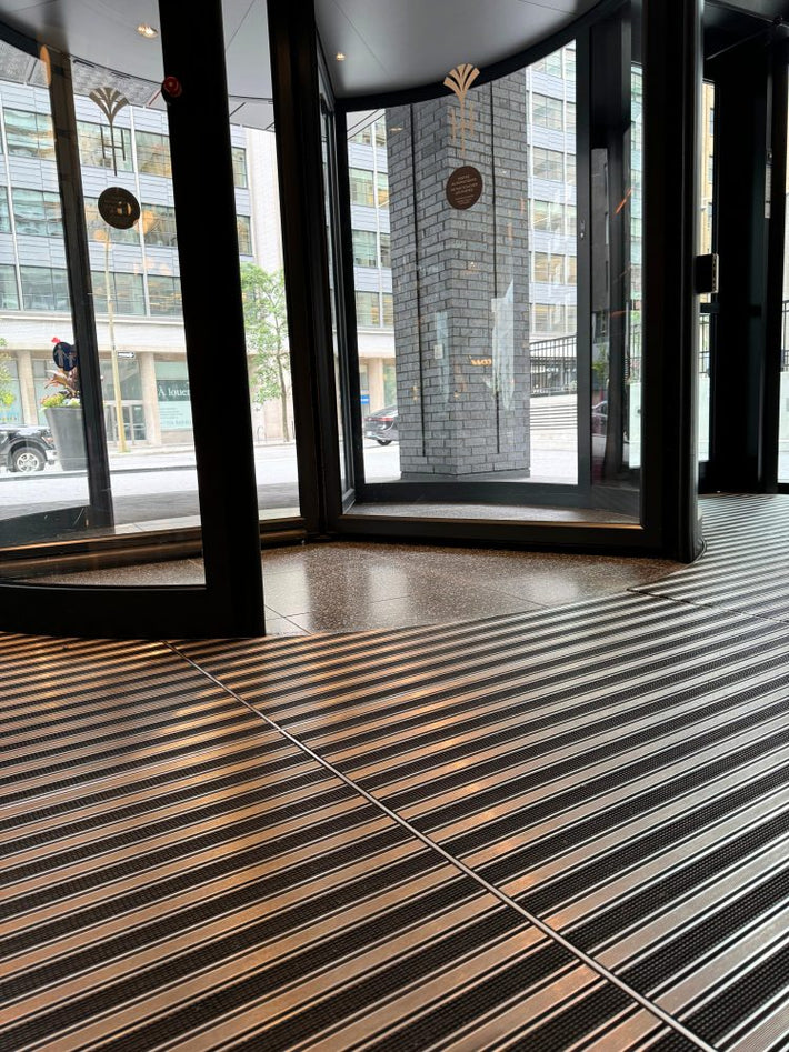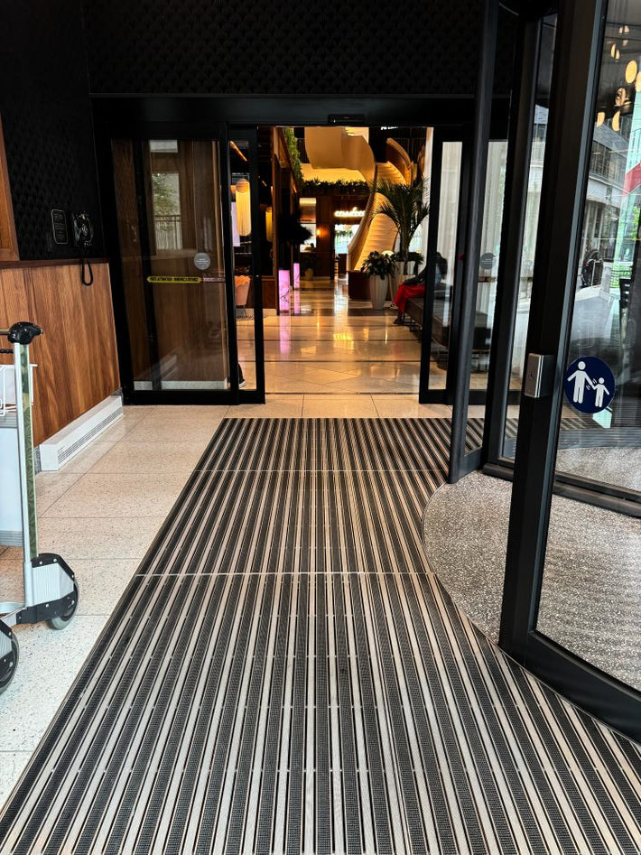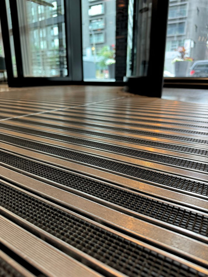 Une pièce maîtresse de design pour un hôtel de prestige qui jumelle le look raffiné du vinyle avec la durabilité de l'aluminium.