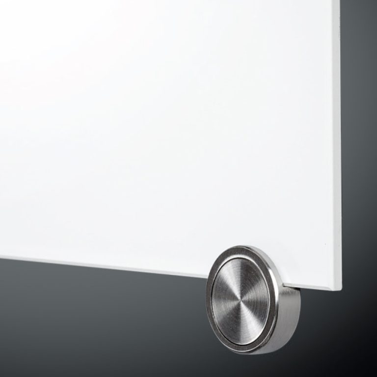 Nos griffes de bordure constituent un moyen simple et élégant de fixer des tableaux de marquage en verre à votre surface murale finie. Un total de quatre griffes est installé au-dessus et au-dessous du tableau d'affichage en verre, ce qui lui permet de se détacher du mur.
