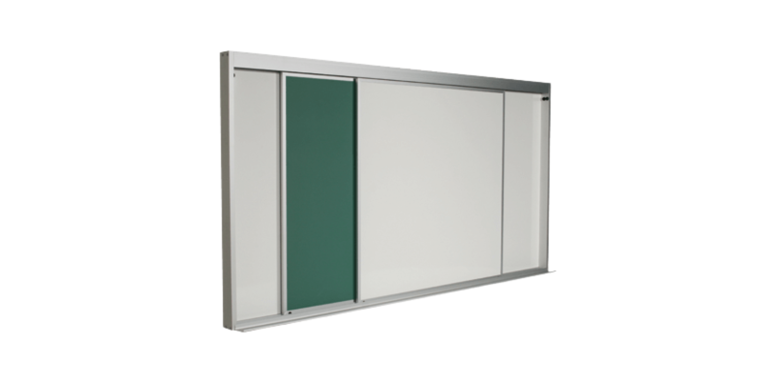 Cette configuration de tableau coulissant offre une utilisation intuitive et efficace grâce à son déplacement horizontal fluide. Idéale pour optimiser l’espace disponible, elle permet d’accéder rapidement à plusieurs surfaces d’écriture ou d’affichage dans un seul tableau, parfaite pour les salles de classe, bureaux et espaces collaboratifs.