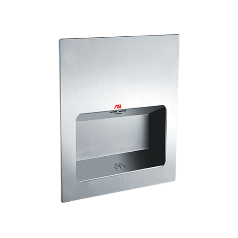 Séchage rapide, moins de 15 secondes, et fonctionnement automatique grâce à un capteur infrarouge avec thermostat à réinitialisation automatique. Vitesse et température de l'air réglables par le propriétaire et options de chauffage marche/arrêt avec arrêt lorsque l'utilisateur retire ses mains de la zone du capteur. Finition en acier inoxydable satiné.