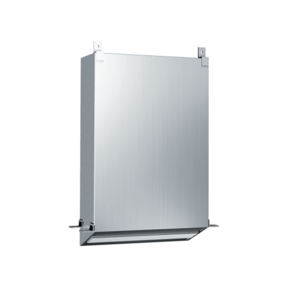 Ce meuble est doté de deux volets à pousser pour le remplissage par le bas avec des serviettes et distribue 600 serviettes en papier à pliage en C ou 800 serviettes en papier à pliage multiple ; il est conçu pour dissimuler le distributeur derrière un miroir ou un mur, de sorte que seule l'ouverture du plateau à serviettes est visible. Les serviettes s'alimentent d'elles-mêmes jusqu'à épuisement du stock. Les serviettes sont rechargées par le bas grâce à deux rabats à pousser.