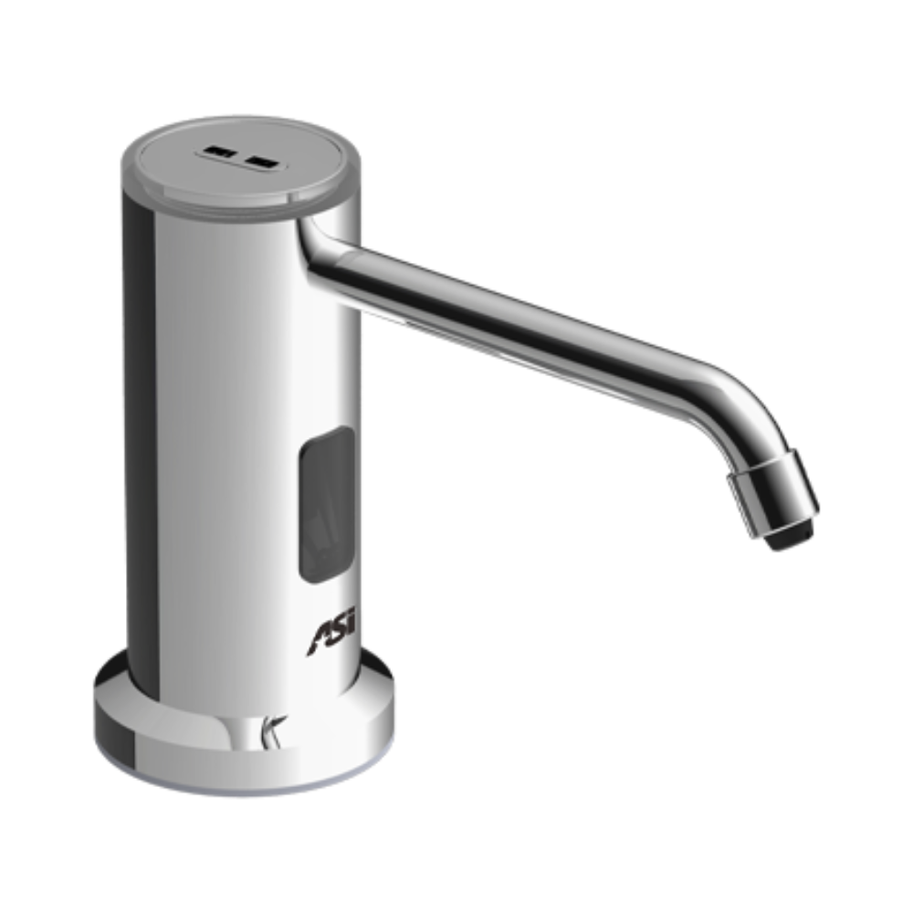 Le couvercle antivol s'ouvre à l'aide d'un entonnoir doté d'une clé intégrée pour un entretien soigné et facile. L'anneau LED indique que le niveau de savon mousse est bas et que le savon est incorrect. Le capteur intelligent empêche les débordements désordonnés en émettant un signal sonore et en faisant clignoter l'anneau LED. Alimenté en courant alternatif.