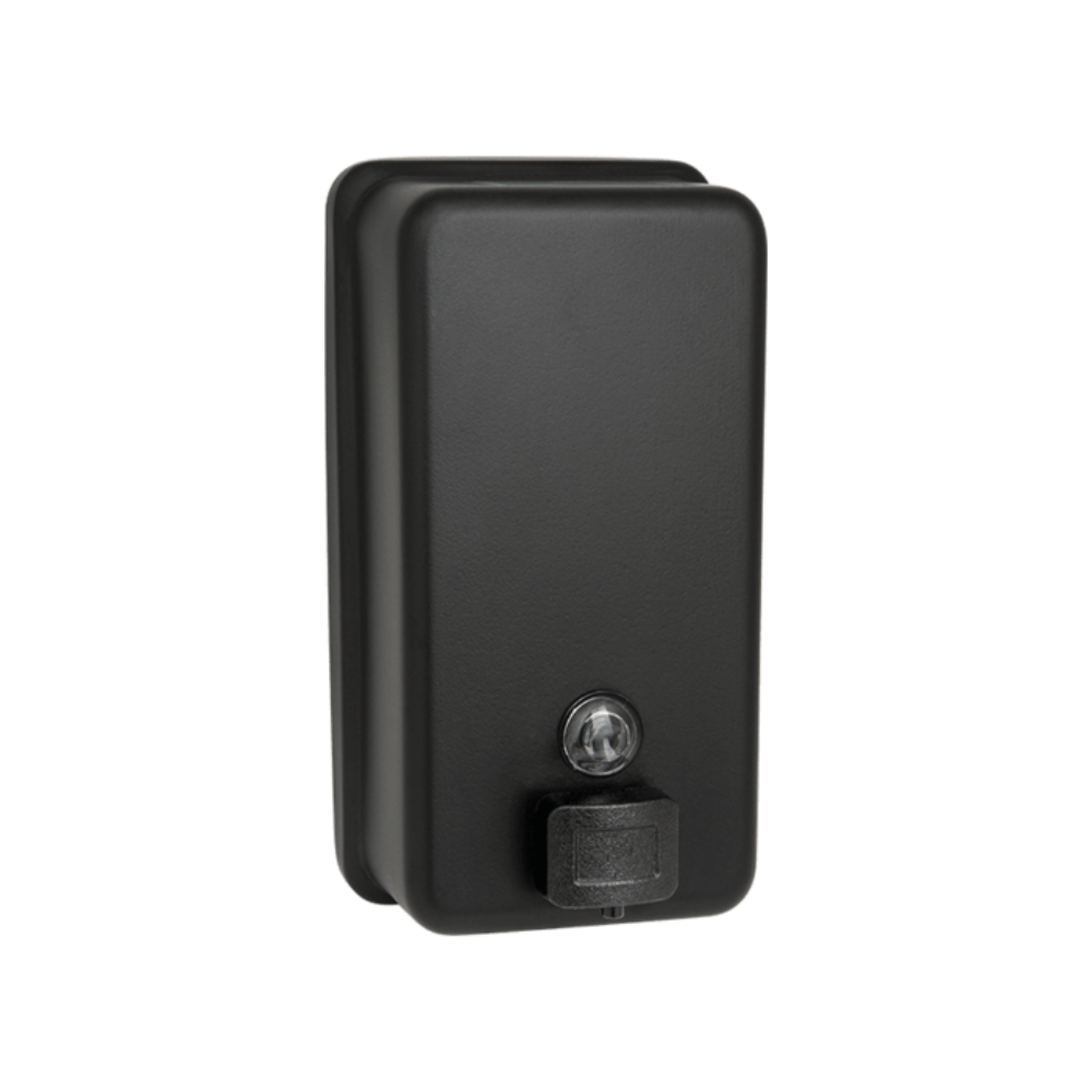 Un bouton poussoir permet de distribuer le savon. Le remplissage de l'appareil s'effectue par la porte à charnière située sur le dessus, dont l'ouverture nécessite une clé spéciale (fournie). Le réservoir de savon continuera à être alimenté correctement jusqu'à ce que le niveau de savon soit en dessous de l'orifice d'entrée de la valve. Le réservoir est réapprovisionné manuellement.