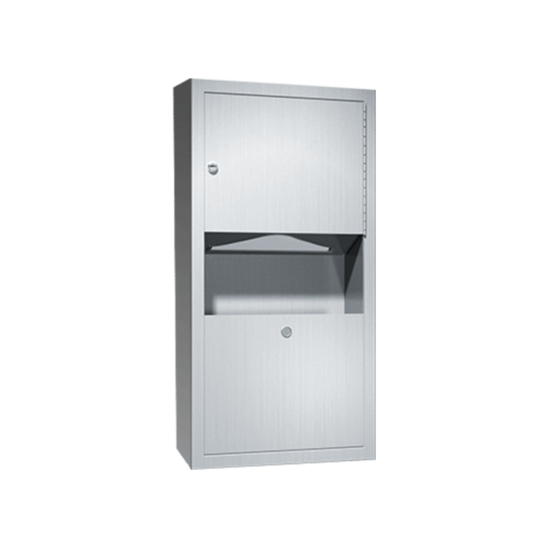 Distribue 350 serviettes en papier à plis en C ou 475 serviettes en papier à plis multiples. Récipient à déchets de 7,6 litres (2 gal.).