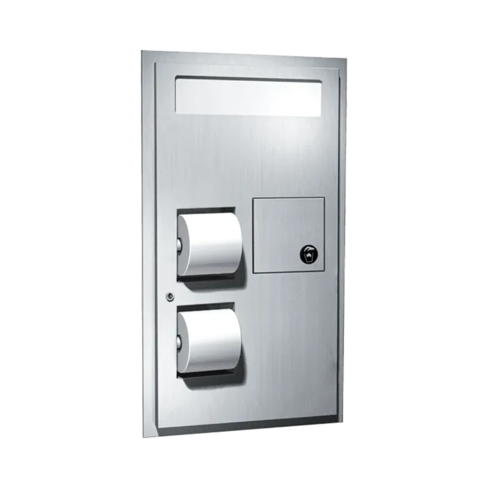Distributeur de Protège-Sièges de Toilette & de Papier Hygiénique avec Réceptacle pour Serviettes Sanitaires – Encastré