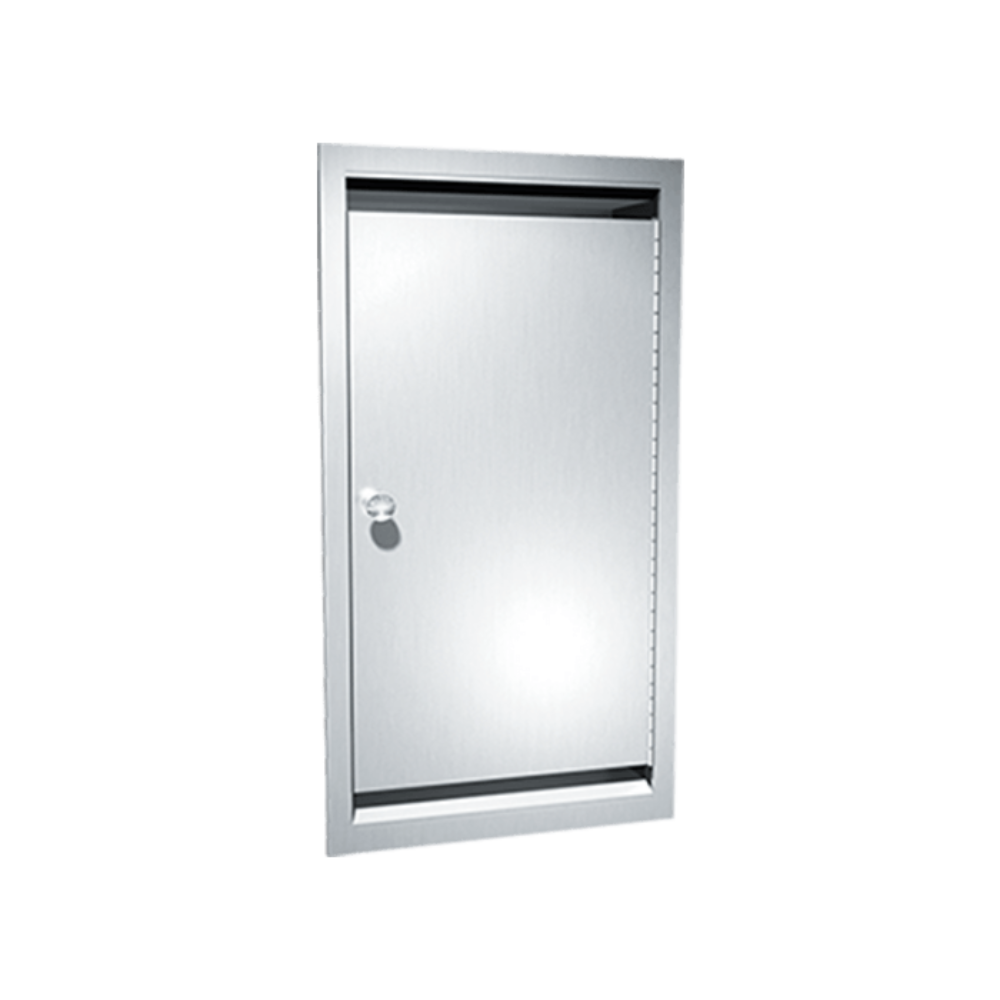Peut contenir un (1) bassin de lit de type conventionnel et un (1) lavabo (par d'autres, de types indiqués sur les dessins d'atelier). La porte de l'armoire est à double battant avec âme No-Flex et est suspendue au corps de l'armoire par une charnière à piano en acier inoxydable robuste de 3/16" (5 mm) de diamètre et est maintenue fermée par un loquet magnétique.