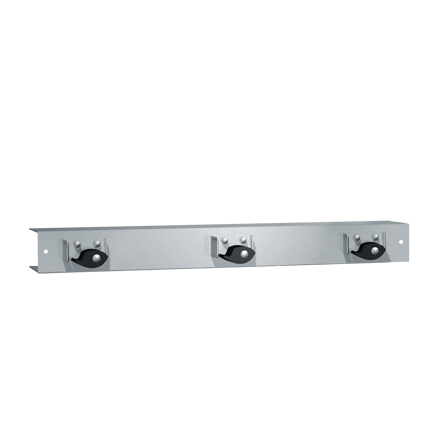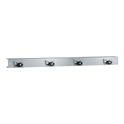 Profilé fabriqué en acier inoxydable de type 304 de calibre 20 avec un fini satiné #4. Dépasse de ½" (13 mm) du mur. Les supports sont munis de cames en caoutchouc dentelées pour faciliter la prise.