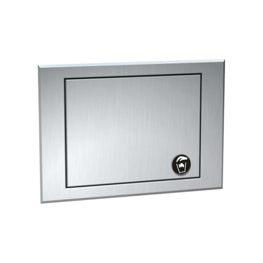 Les déchets sont déposés à travers la porte battante par une pression vers le bas. Lorsque la pression est relâchée, la porte se referme automatiquement