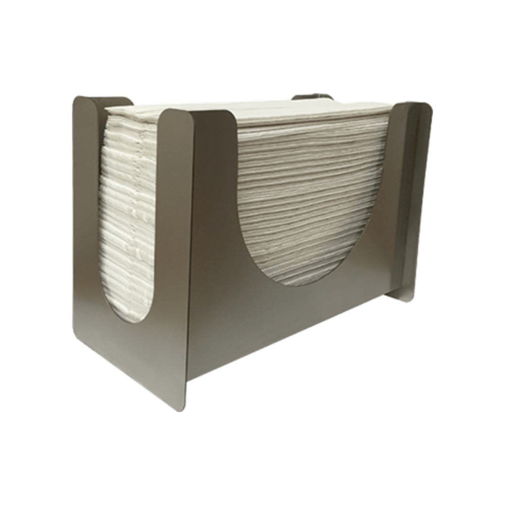 Le porte-serviettes est fabriqué en acier inoxydable 304, alliage 18-8. Il peut contenir 250 serviettes standard à pliage en C ou 350 serviettes standard à pliage multiple. L'unité est de calibre 16.