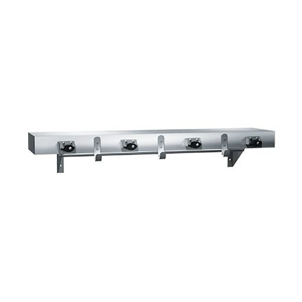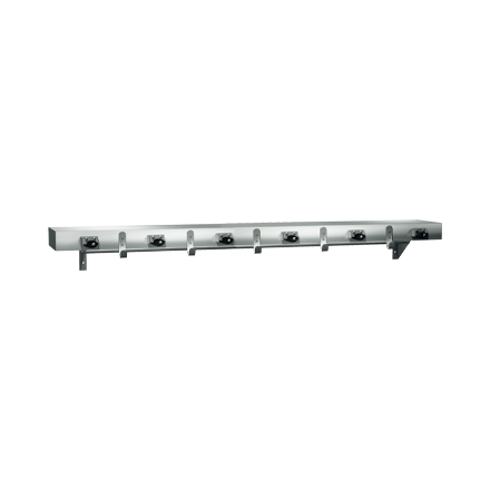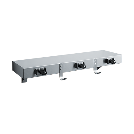 Fabriquée en acier inoxydable de type 304 satiné, cette étagère a une profondeur de 8″ (203 mm) avec un retour de 3/4″ (19 mm) pour la rigidité. Les porte-serpillières sont rivetés à la bande, et la came en caoutchouc est nervurée pour faciliter la prise. Une tige et des crochets pour les chiffons humides sont inclus.