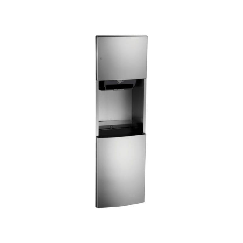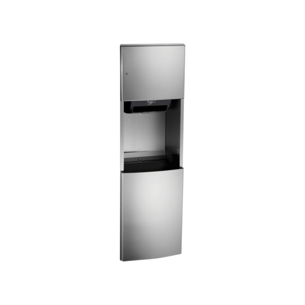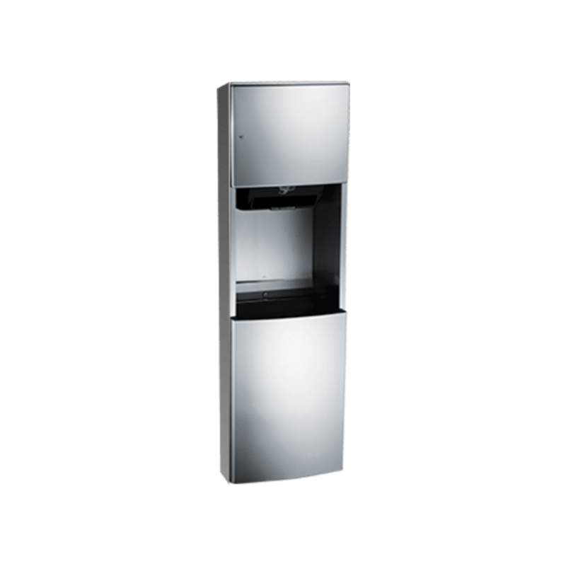 Fabriqué en acier inoxydable 304 de calibre 18. Récipient à déchets amovible de 67,2 litres (17,8 gal.). La longueur des serviettes est déterminée par le propriétaire en réglant les interrupteurs de longueur, de délai et d'économie de papier.