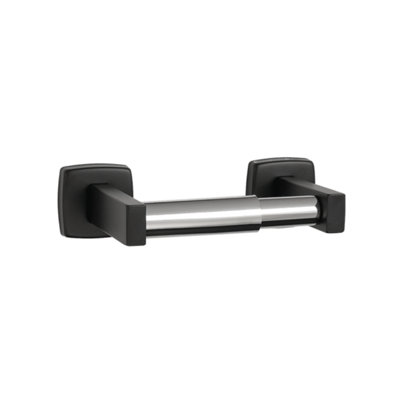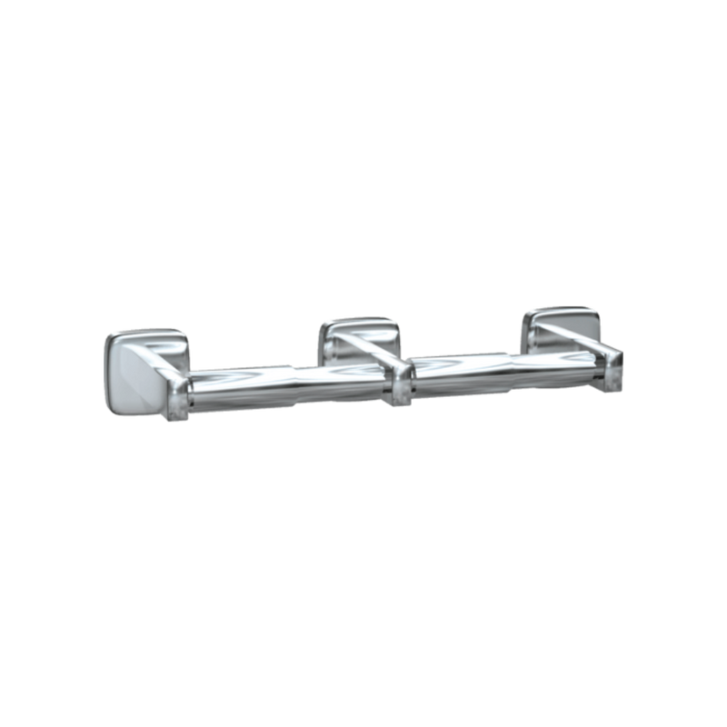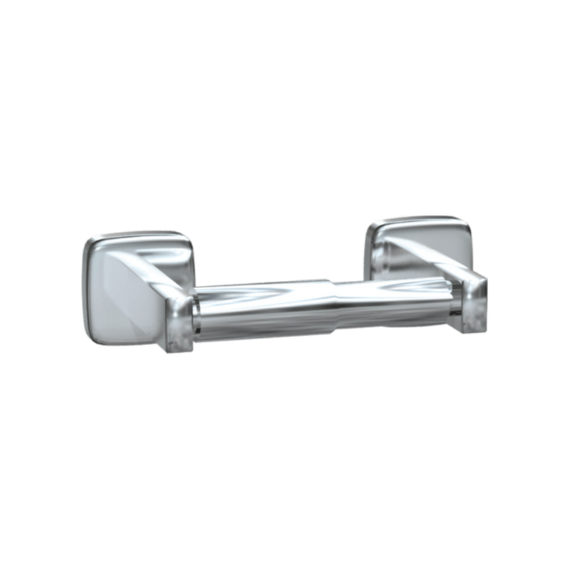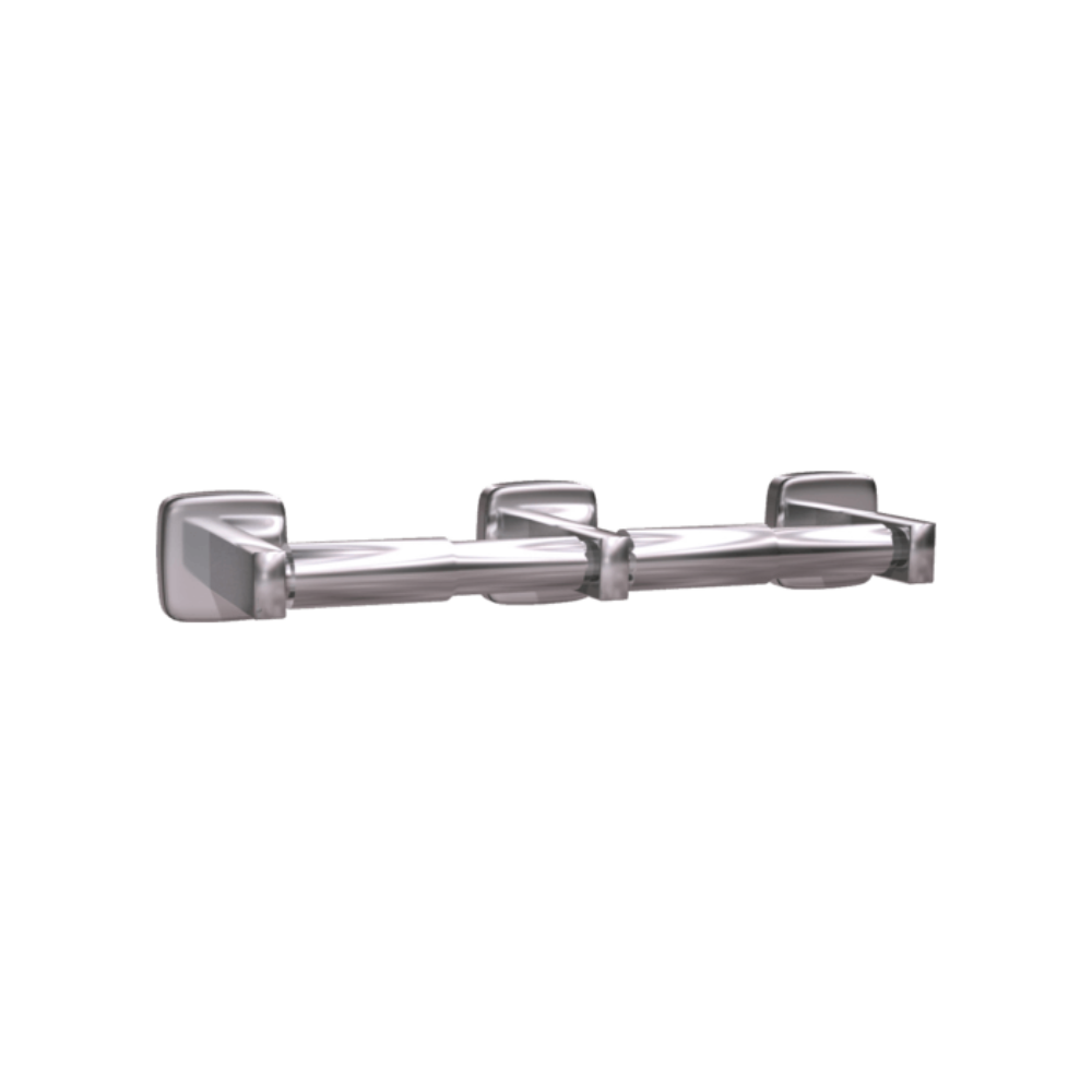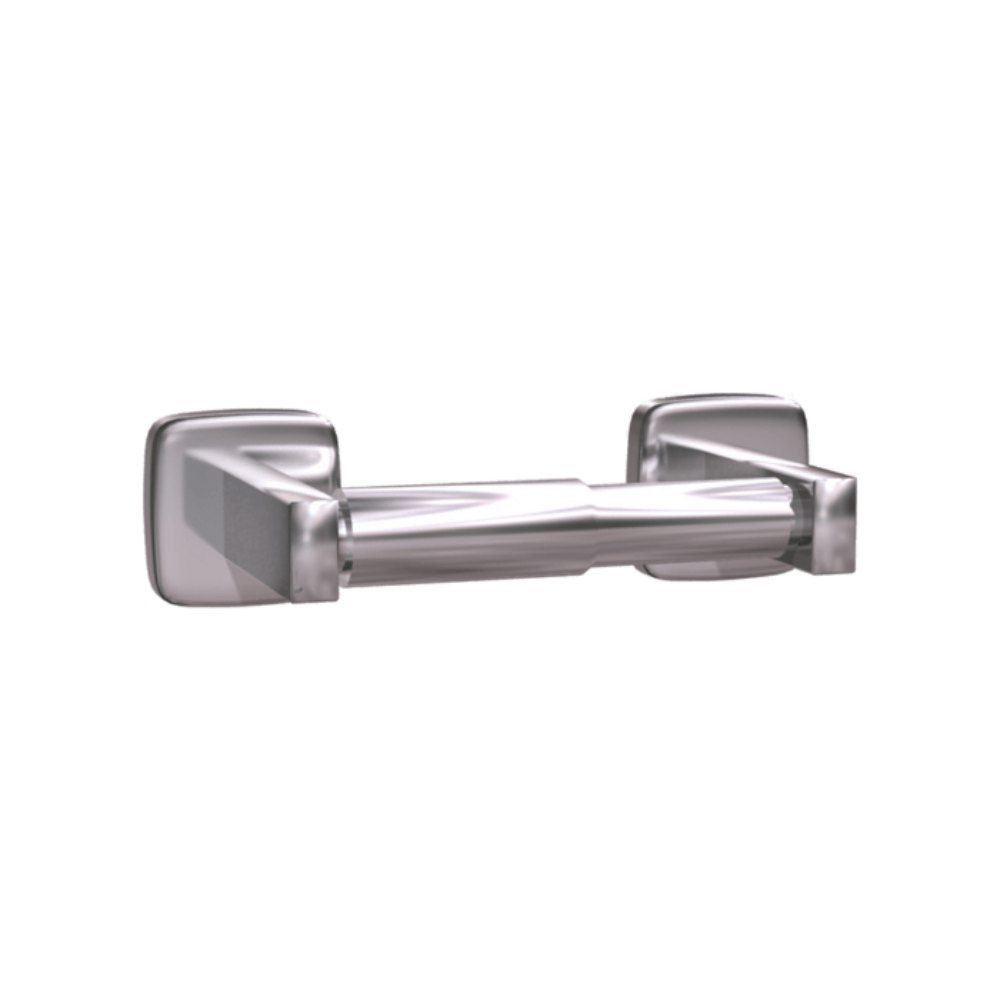 Acier inoxydable de type 304 satiné avec rouleau chromé (ou noir mat). Le support dissimulé de gros calibre se monte sur le mur. Peut contenir un rouleau de 1800 feuilles à noyau standard. Peut contenir 2 rouleaux.