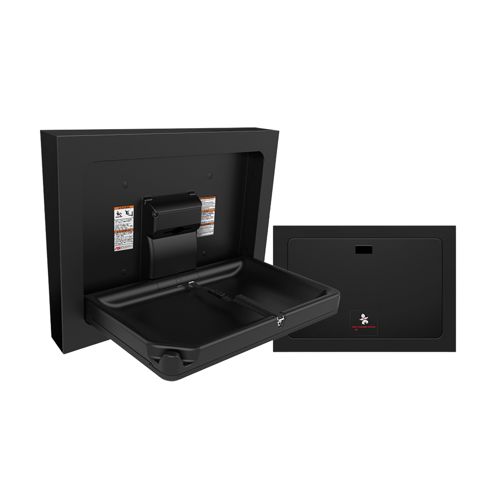 Table à langer, HORIZONTAL - ACIER INOXYDABLE (FINITION NOIR MAT), montage en surface, capacité de 250 lbs