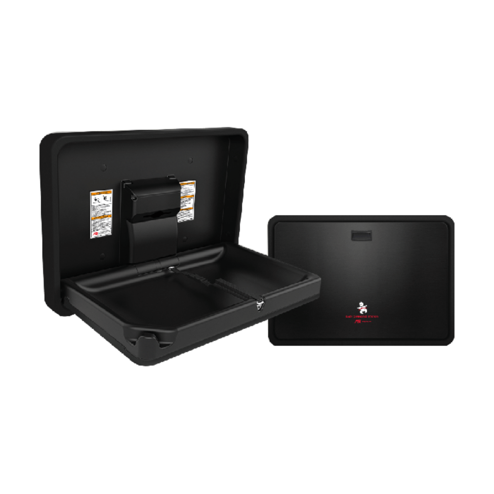 Table à langer, HORIZONTAL - PLASTIQUE NOIR MAT/ACIER INOXYDABLE (NOIR MAT), montage en surface, capacité de 250 lbs