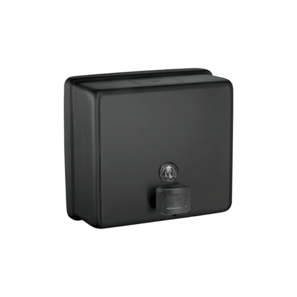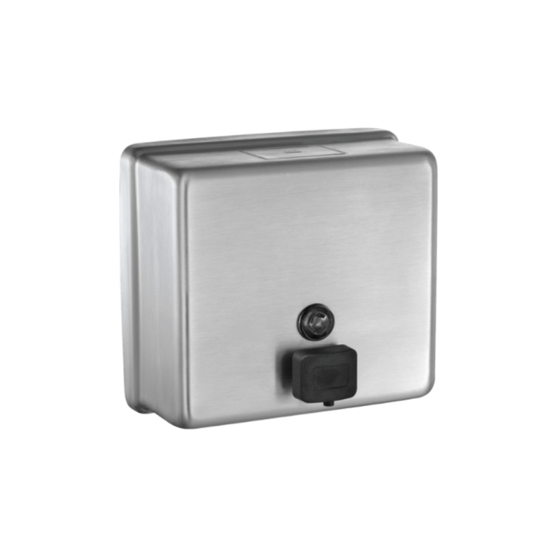 Le distributeur de savon liquide en acier inoxydable au fini satiné a une capacité de 1,4 L (48 oz liq.). Il est équipé d'une fenêtre de remplissage inviolable avec fixation cachée et d'un couvercle de remplissage à charnière résistant au vandalisme.