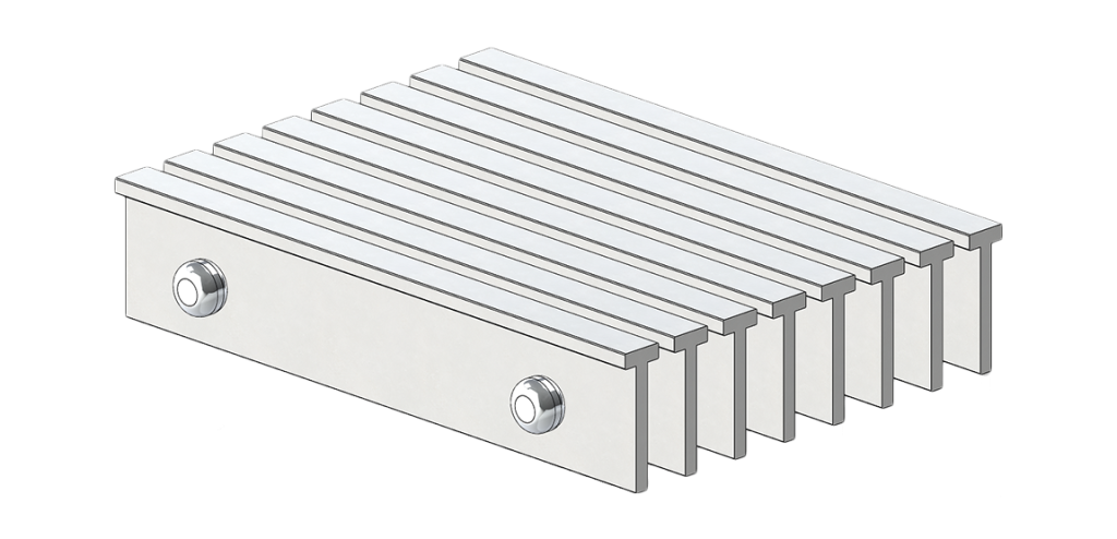 Les lames de la grille sont en aluminium et se présentent sous la forme d’un T.