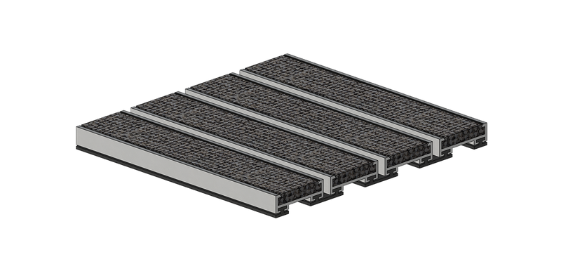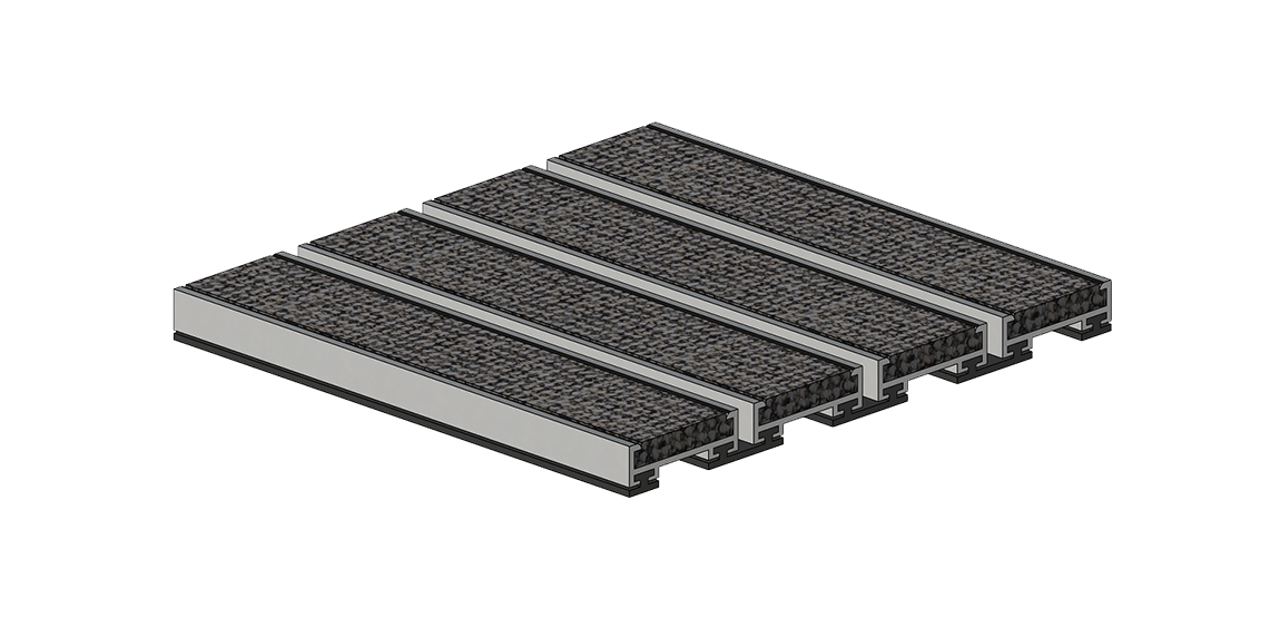 Les lames du paillasson sont en aluminium et se présentent avec une insertion de tapis rivetée à chaque extrémité. Les insertions de tapis sont interchangeables et conçues spécialement pour allier esthétique et efficacité. Ce modèle offre la plus grande variété de couleurs et peut donc se marier au décor environnant. Il ajoute une touche luxueuse à votre domicile.