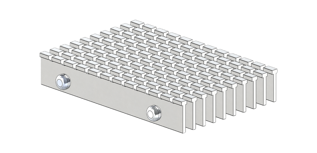 Un modèle de grille qui est conçu pour les vestibules à circulation multidirectionnelle et qui est antidérapant dans un sens comme dans l’autre.
