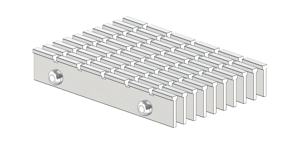 Les lames de la grille sont en aluminium et se présentent sous la forme d’un T.