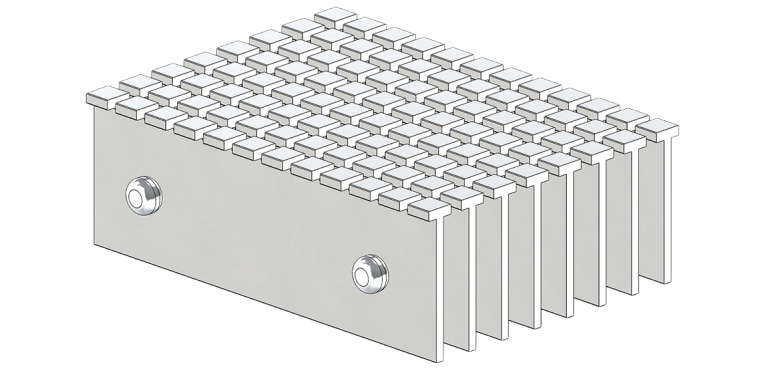 Les lames de la grille sont en aluminium et se présentent sous la forme d’un T avec un assemblage de tiges en acier inoxydable. Ce modèle de grille est conçu pour les vestibules à circulation multidirectionnelle et est antidérapant dans un sens comme dans l’autre.