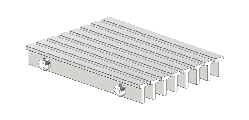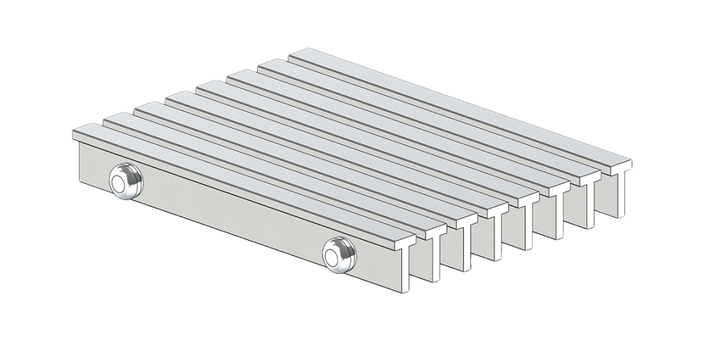 Les lames de la grille sont en aluminium et se présentent sous la forme d’un T.