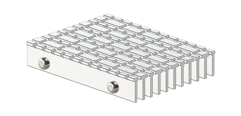 Ce modèle de grille est antidérapant dans un sens comme dans l’autre. Il est fabriqué avec deux modèles de lames entrelacées à intervalles réguliers, pour un design à la fois moderne et exclusif.