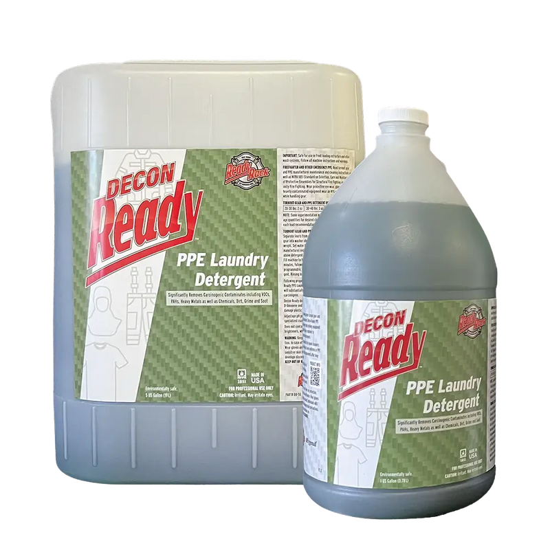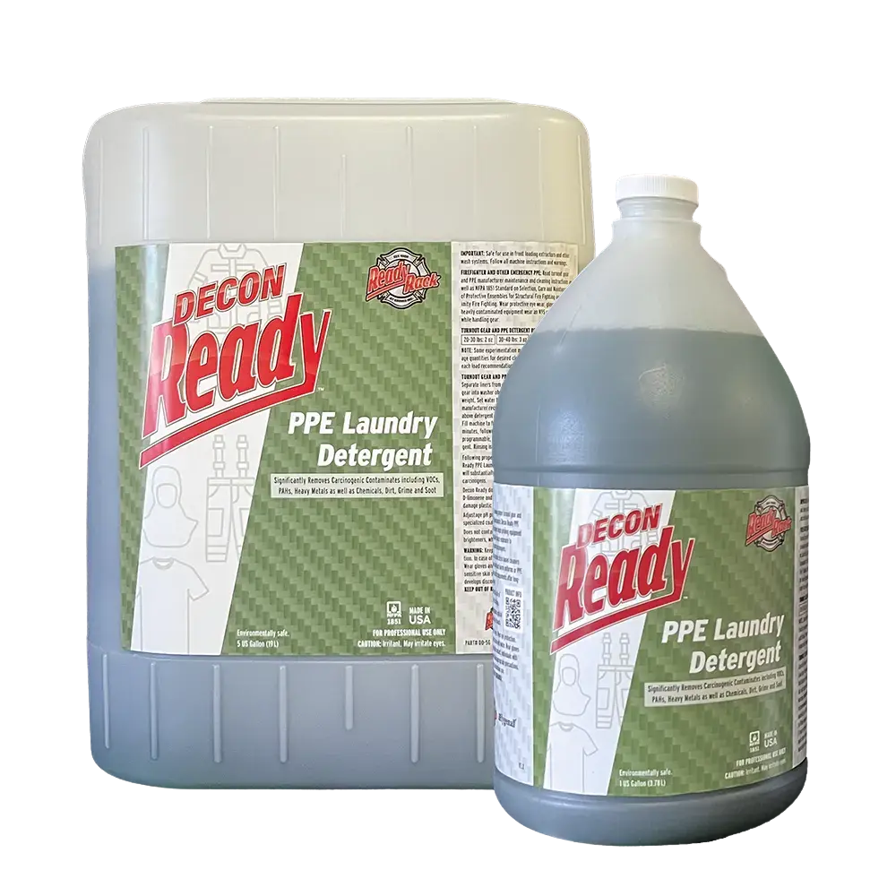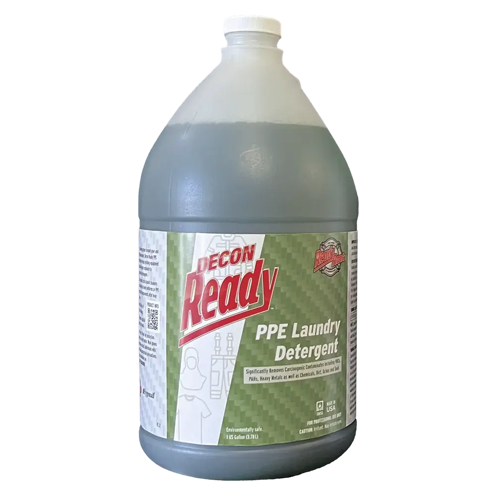 Le détergent pour EPI Decon Ready™ lave et protège les vêtements et les tenues d’intervention en respectant la norme NFPA 1850 : 2026, rendant plus facile que jamais la préservation de la durée de vie de votre équipement ! Le détergent Decon Ready™ élimine la saleté, les produits chimiques toxiques, les oxydes métalliques, les résidus plastiques, la suie, les résidus médicamenteux et les isotopes nucléaires cationiques des tenues sans contenir de produits chimiques nocifs tels que le D-limonène. De plus, ce détergent ne contient aucun solvant à base d’agrumes ! En résumé, le détergent pour EPI Decon Ready™ garde votre équipement propre tout en le préservant.