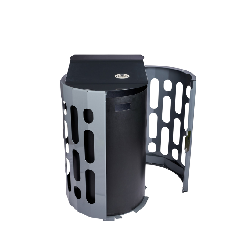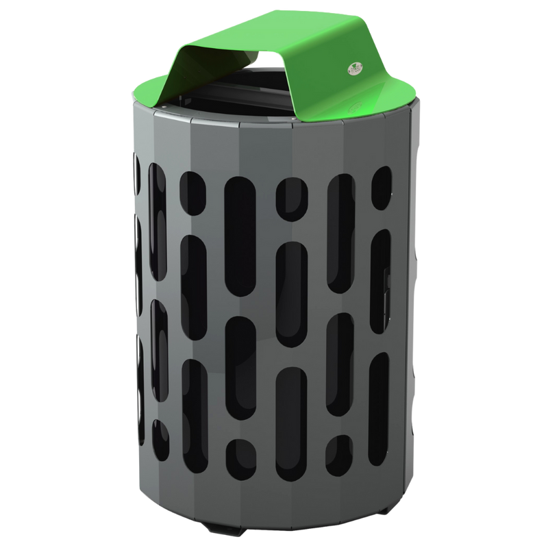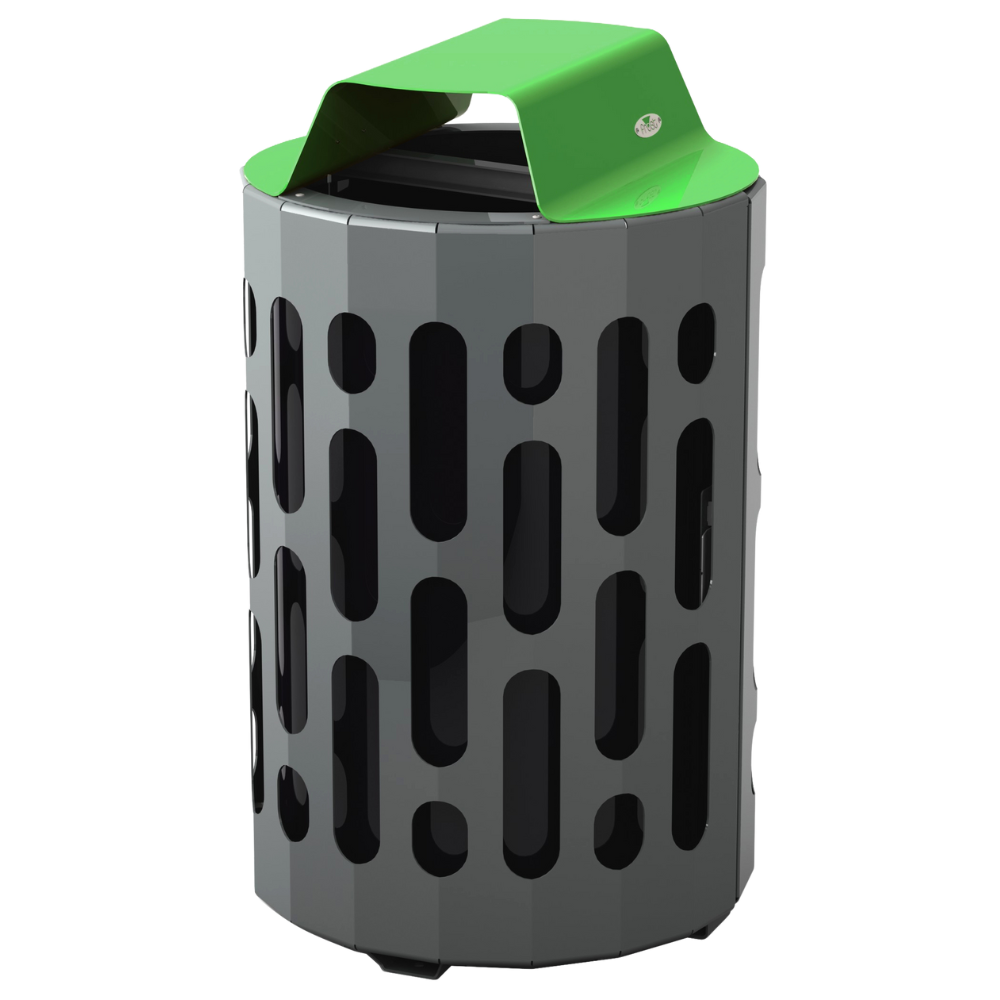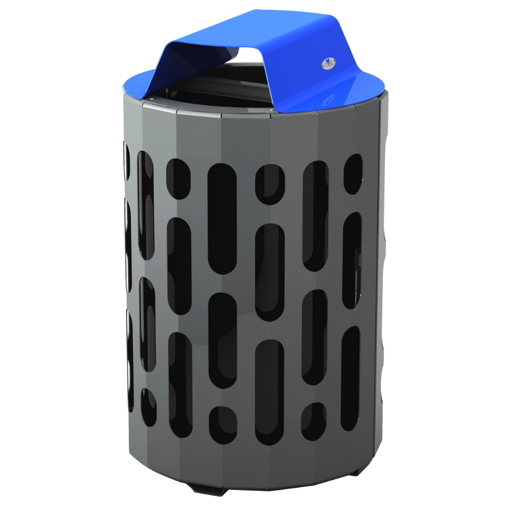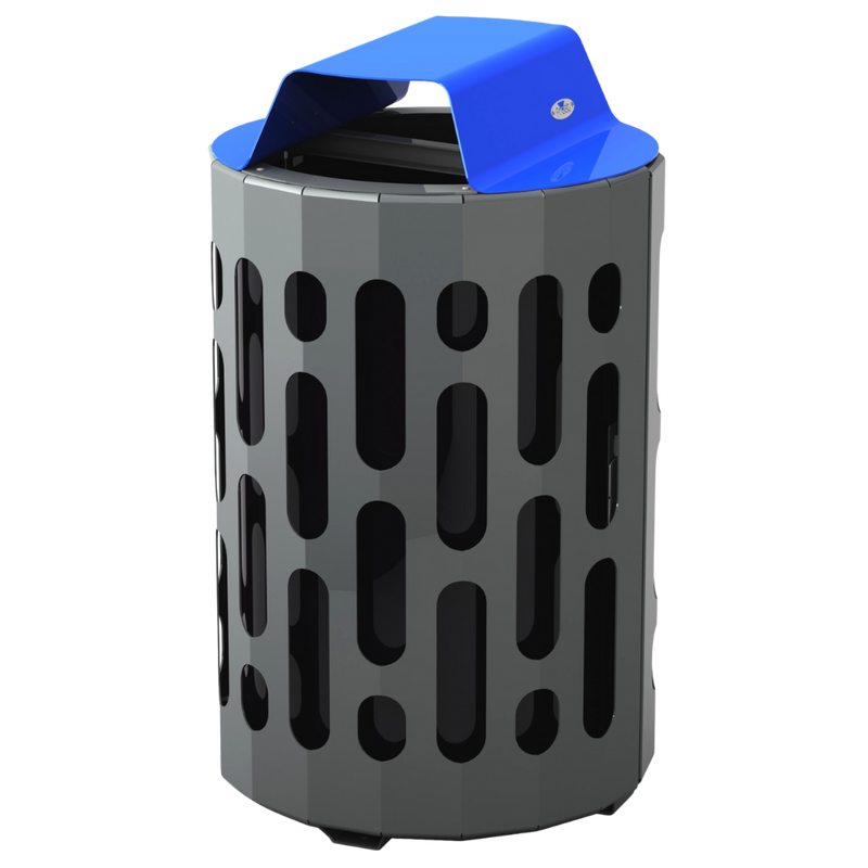 La série de poubelles 2020 est disponible dans une variété de couleurs. L'ouverture latérale permet un accès facile et ergonomique à la poubelle, avec une fermeture à loquet cachée. Les pieds permettent à l'unité d'être solidement ancrée au sol, réduisant ainsi les risques de vandalisme ou de vol. Le couvercle est livré avec quatre choix de couleurs; bleu, noir, rouge ou vert, avec un corps gris. L'entrée des déchets décourage les gros objets ou sacs à placer à l'intérieur. Les dimensions sont: 39″ W x 23″ de diamètre. Dimensions de l'ouverture des déchets: 5,5" H x 11,5" L (en bas) 8,5" L (en haut).