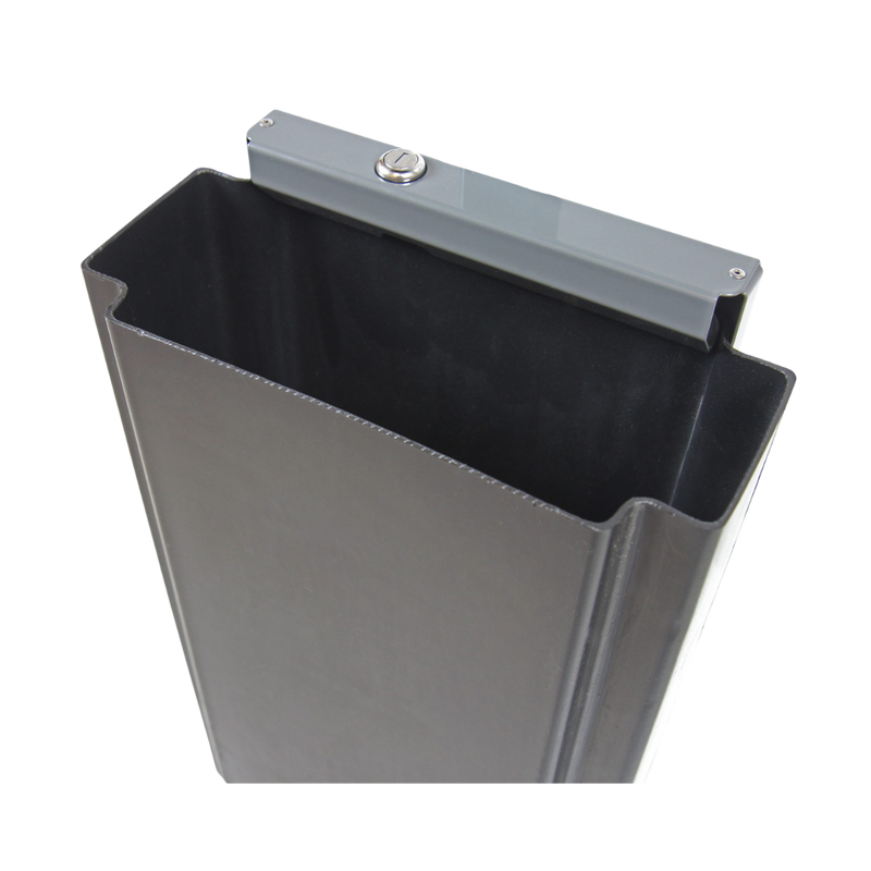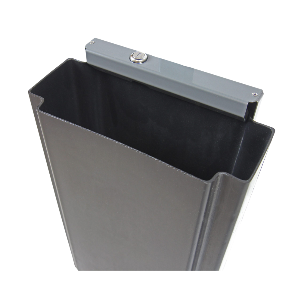 L'élimination des déchets pour animaux de compagnie 2011 est conçue pour être utilisée avec la station de déchets pour animaux de Frost de Frost. Le bac à déchets est fabriqué à partir de polyéthylène moulé par rotation robuste qui est 100 % recyclé. L'élimination se verrouille au piédestal (vendu séparément, code 909-100) par le support en acier de calibre 18 (inclus), qui est fini avec une peinture enduite de poudre antirouille grise. Un mécanisme de verrouillage maintient la poubelle bien en place et permet un retrait facile pendant l'entretien. L'élimination comprend des trous de drainage pour empêcher l'unité de retenir l'eau pendant les périodes de pluie. La capacité est de 18,75 litres (4,1 gallons imp/5.4 gallons US). Cette disposition peut être montée sur un piédestal Frost code 909-100 ou sur un tube de poteau de signalisation carré perforé standard.