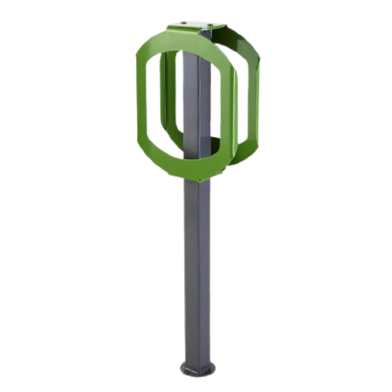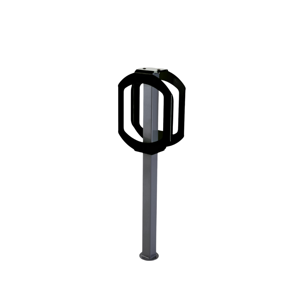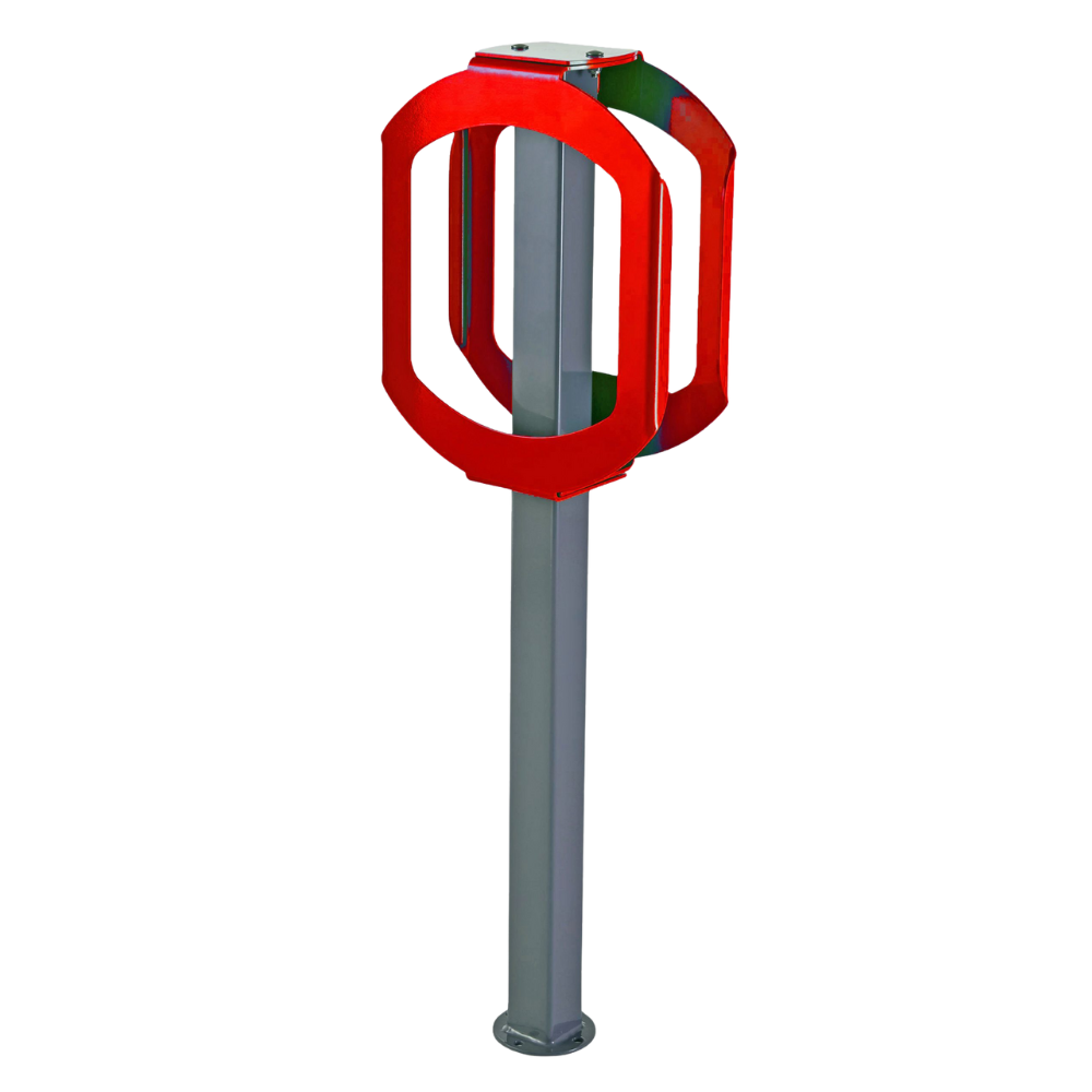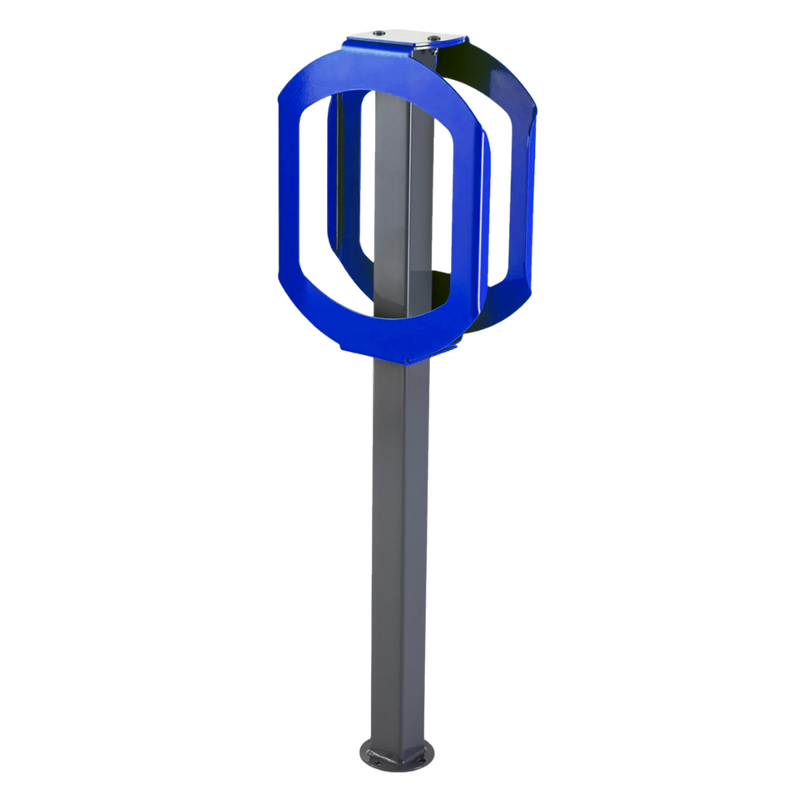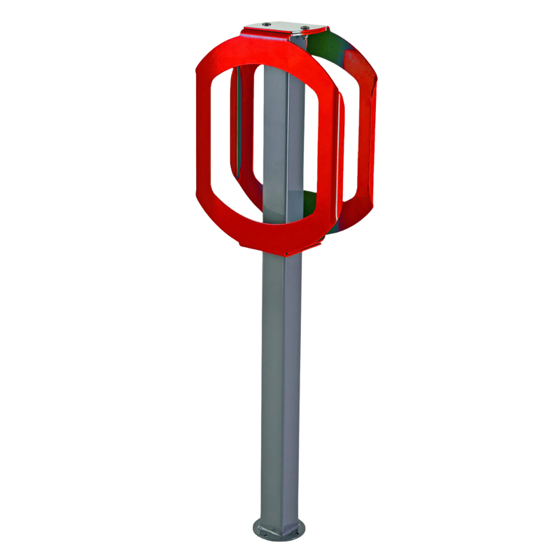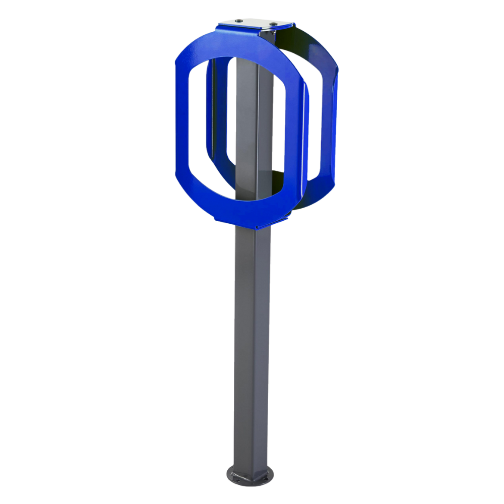 Les porte-vélos Frost 2070 “Bike Stop” sont fabriqués en acier canadien robuste et sont conçus pour contenir deux vélos. Le produit a une conception à deux anneaux et un tuyau carré pour dissuader l'utilisation d'un coupe-tube. Il utilise des contre-écrous anti-vandalisme pour rendre le démontage du rack extrêmement difficile. Il a une construction en acier canadien de calibre 12 avec un revêtement en poudre de polyester sans TGIC super durable RAL qui offre une finition résistante à la rouille. Le porte-vélos est disponible en noir, bleu, rouge ou vert, avec poteau gris. Les dimensions sont : 12″L x 36″H x 4,6″D. Dimensions des trous de montage : 0,35 de diamètre pour chacun des quatre trous de montage. L'aspect architectural unique et la fabrication durable en font un excellent produit pour de nombreux sites commerciaux et résidentiels