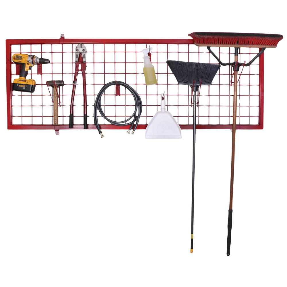 Options: Grand support conçu pour suspendre balais, vadrouilles, marteaux et plusieurs autres articles dans votre département ou Crochet de 8″ conçu pour suspendre cordages, bouteilles, outils, porte-poussières et autres articles trouvés dans votre département.