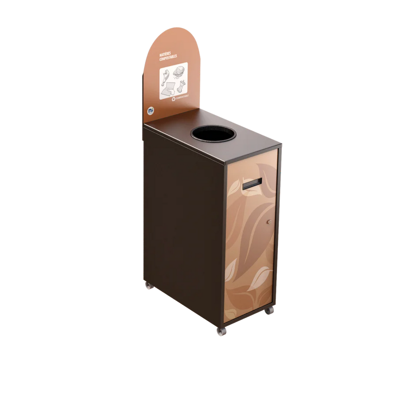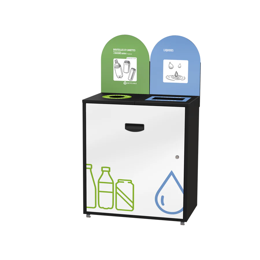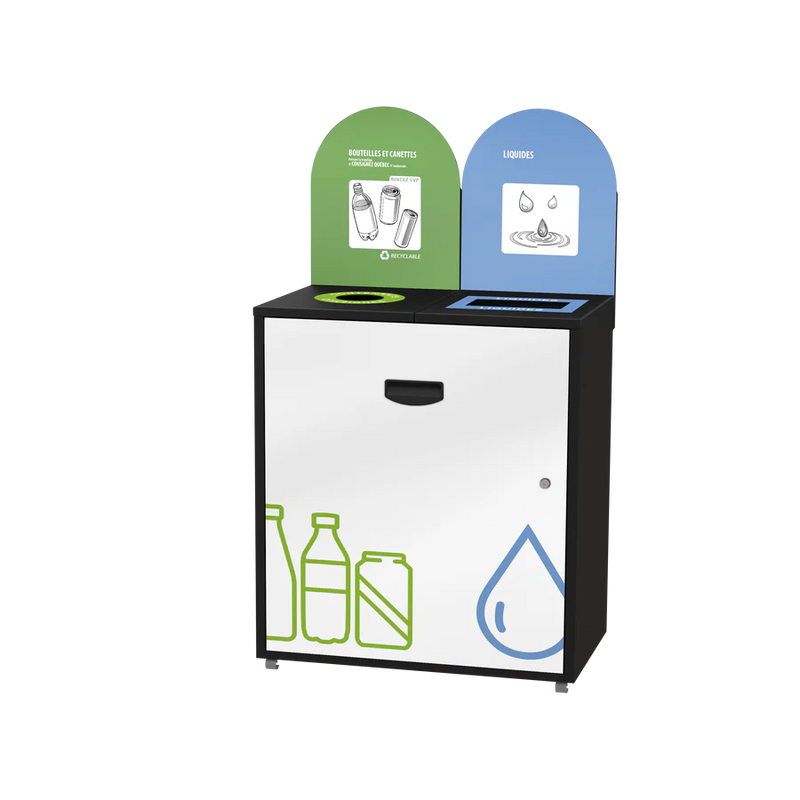 Des doublures en plastique (60 litres) sont insérées à l’intérieur de chacun des compartiments. Des sacs de 22″ x 36″ peuvent être insérés à l’intérieur de chacune des doublures.