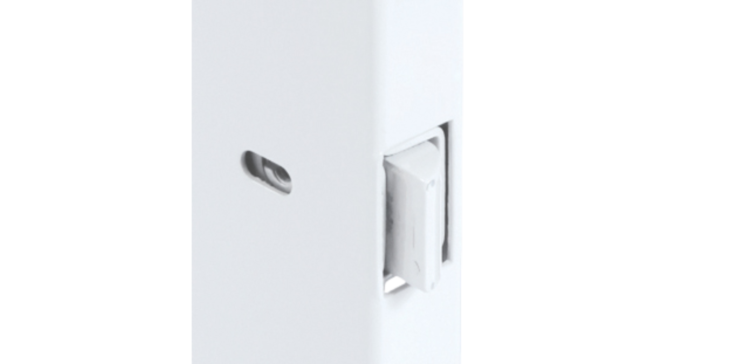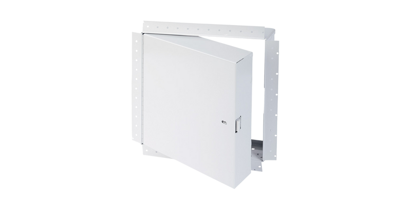 Panneau d’accès isolé, homologué contre le feu, avec cadre perforé, pour gypse, Enclenchement automatique avec clé-outil et serrure à anneau incluses • Penture piano • Installation : mur et plafond