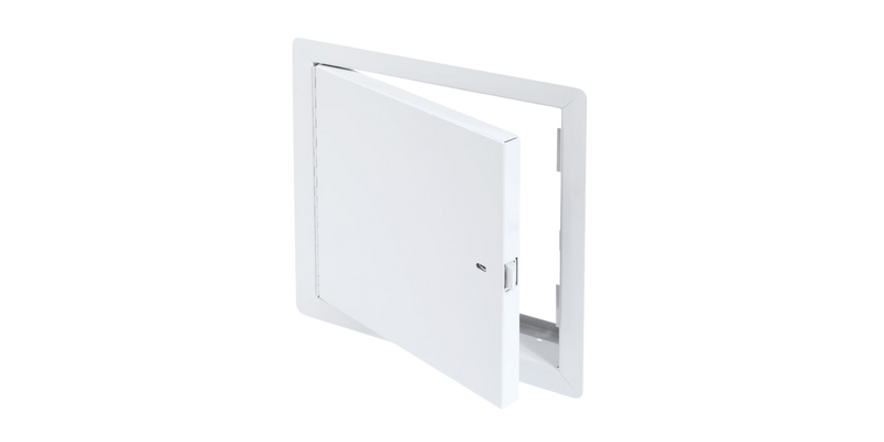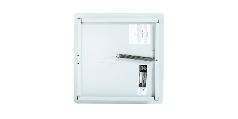 Panneau d’accès non isolé, homologué contre le feu, avec cadre apparent, Enclenchement automatique avec clé-outil et serrure(s) à anneau incluse(s) • Penture piano • Installation : mur