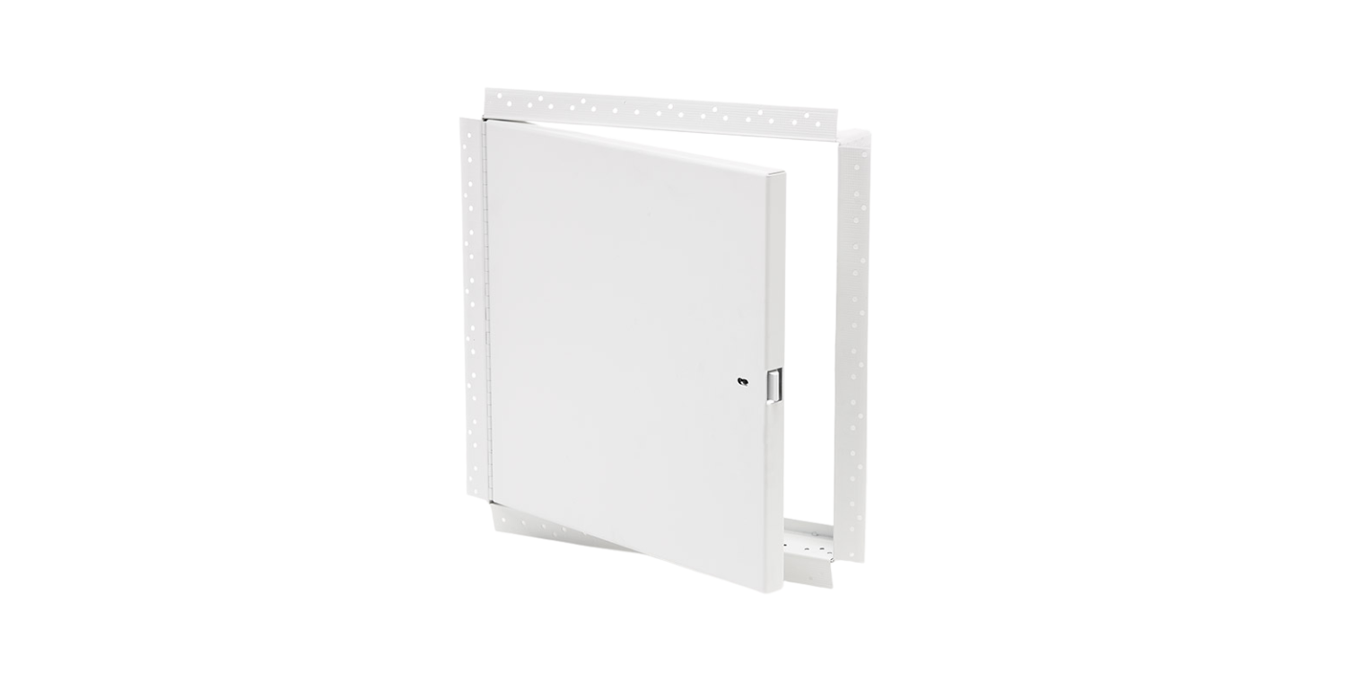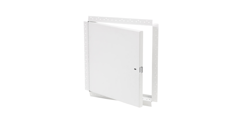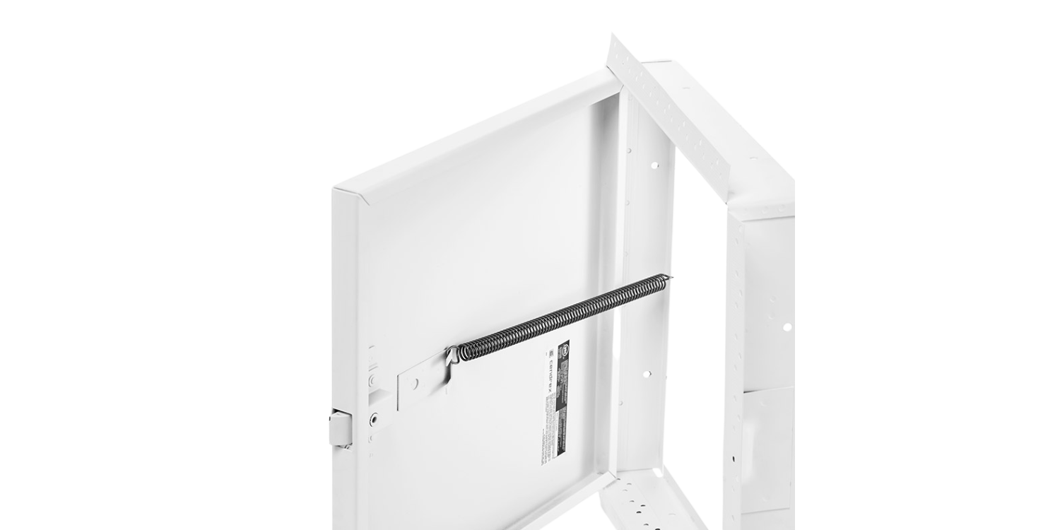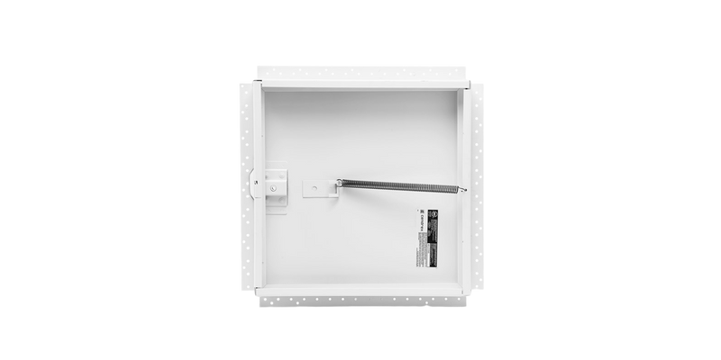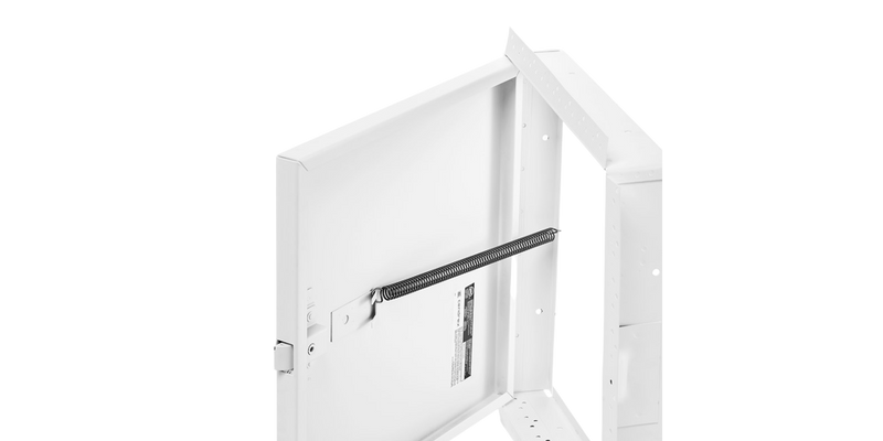 Panneau d’accès non isolé, homologué contre le feu, avec cadre perforé, pour gypse, Enclenchement automatique avec clé-outil et serrure(s) à anneau incluse(s) • Penture piano • Installation : mur