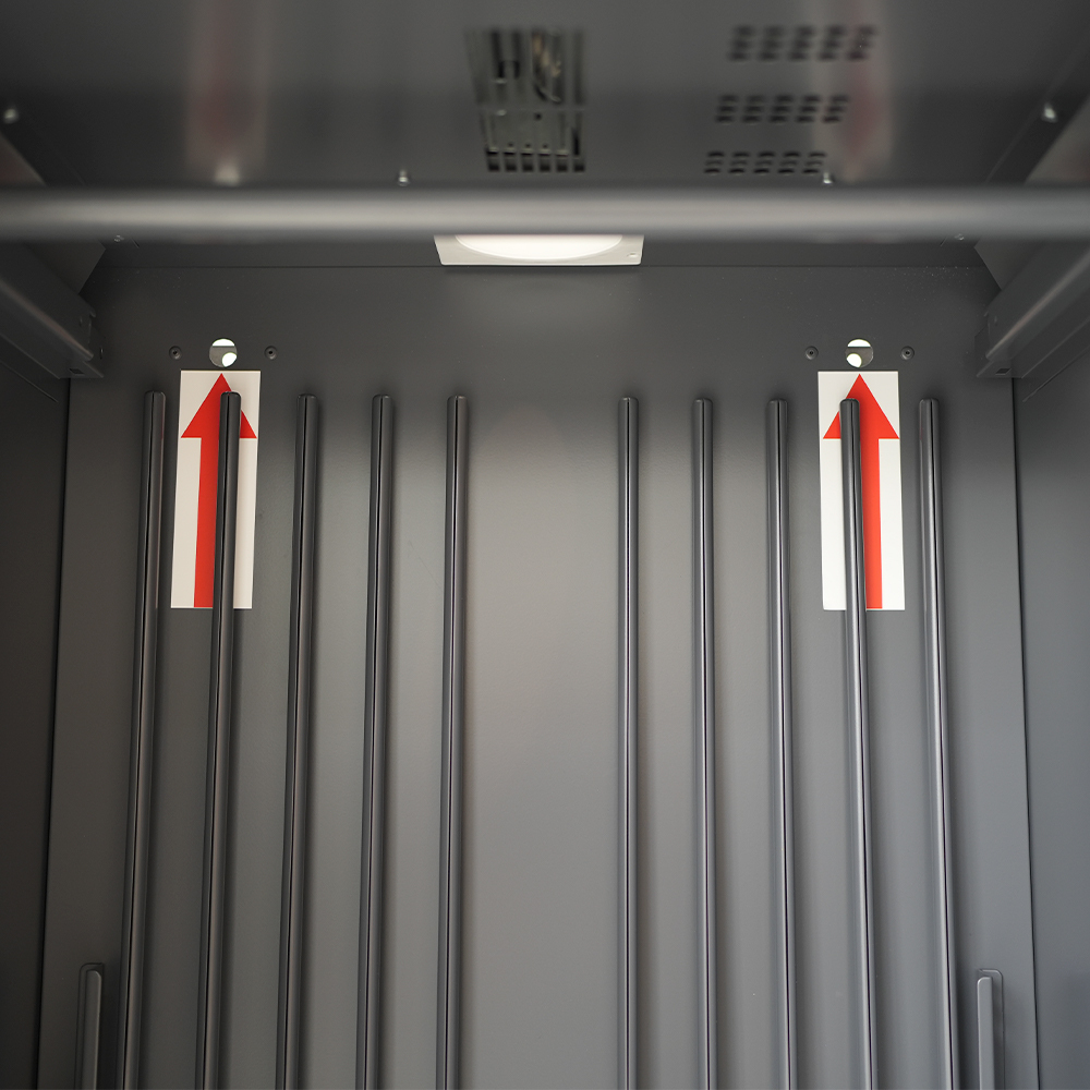 - Capacité: 2 ensembles de tenues d’intervention ou grands vêtements de protection